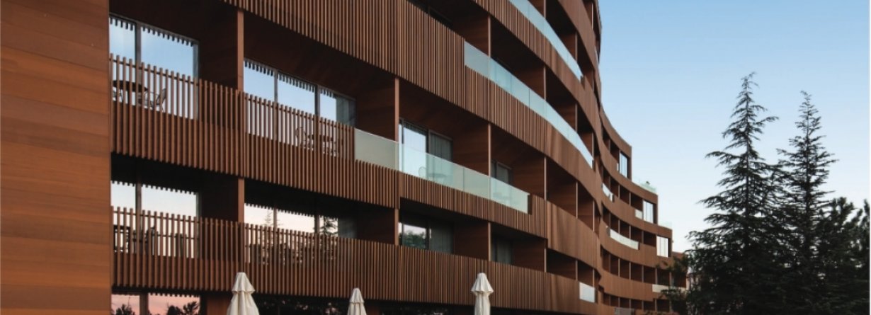With Technowood systems, the natural warmth of wood is integrated into modern façade solutions offering not only shading but also establishing a visual rhythm on the surface that adds depth to the overall design.